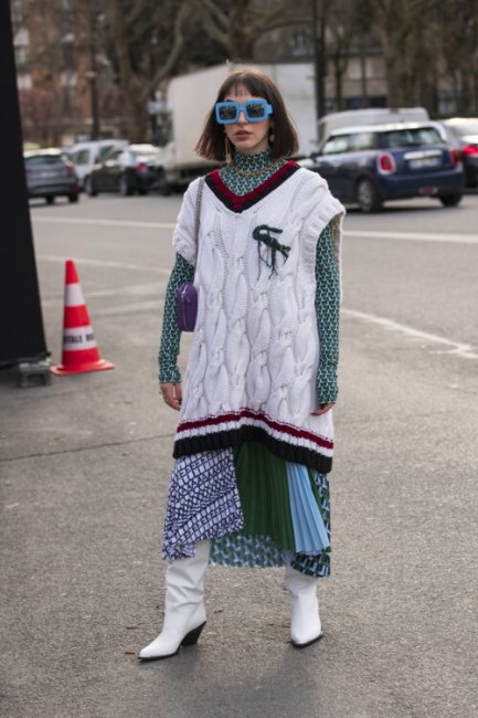 В текущем сезоне трикотаж чувствует себя особенно вальяжно: этот материал нашел отклик не только в душе дизайнеров, но и у инфлюенсеров. Трикотажные джемперы, свитера и жилеты этой весной они советуют носить именно с юбками-плиссе, дополняя их высокими сапогами. В ход здесь также пойдут яркие аксессуары - мини-сумки и солнцезащитные очки в акриловой оправе.