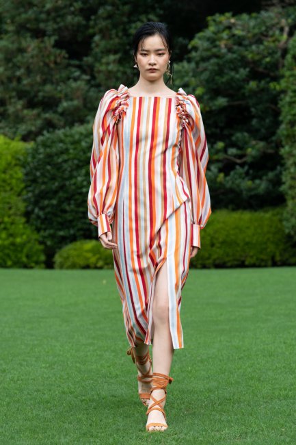 Rebecca TaylorВ лукбуке Emilio Pucci весна-лето 2021 модели демонстрировали черные гладиаторские сандалии, обутые поверх совершенно белых колготок. Небольшая петля на большом пальце напоминала про вьетнамки, а длинные ремешки, обернутые вокруг голеней, создавали драматический эффект. Если большинство брендов делали ставку на плоский ход, то Blumarine и Maxhosa Africa показали провокационную переплетенную обувь на высоких каблуках. Этот стиль напомнил образ Рианны на балу Met Gala в 2017 году, когда она появилась в в авангардном платье Comme des Garçons и босоножках-гладиаторах до середины бедер Dsquared2.