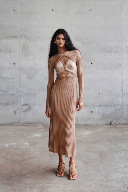 BossВ этом сезоне трикотаж заполонил модные подиумы. Делая вывод из прошлого года, где удобство и комфорт занимали первоочередную позицию, дизайнеры решили предложить девушкам не только вечерние платья, но и повседневные вязаные образы, которые не будут стеснять движения в течении дня. Так, среди пшеничных полей презентовали трикотажное платье рубашечного кроя в цвете кофе с молоком, Michael Kors Collectiion и Hermes предложили сдержанные мини, а Dion Lee показали элегантное платье с соблазнительной линией бра.