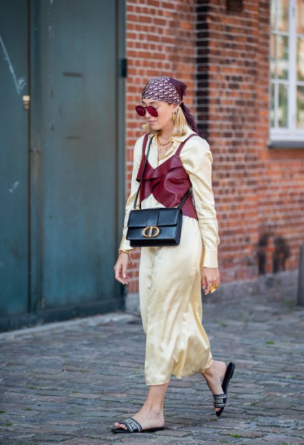 Шелковые платки умело сочетают в себе провинциальный шик и элементы аристократизма. В зависимости от выбора варианта их повязывания, любой образ преображается и обновляется: и за быструю смену настроения в том числе их любят модницы. Повязывать платки, как бандану, заигрывая с эстетикой нулевых, предлагают Dior - все последние коллекции модного Дома не обходятся без этого головного убора. В таком образе чувствуется ностальгическая нотка подростковой дерзости. Повязывать платок а-ля "бабушка" – отнюдь не старомодно. Вдохновиться можно показами Max Mara, Roksanda и Versace, а также стильными выходами рэпера A$AP Rocky, конечно, сделавшими этот головной убор по-настоящему культовым. Классический вариант повязывания платка на шее пришелся по душе Victoria Beckham, Ottolinger и Courreges. Главный секрет такой стилизации – минимум принтов. Сдержанные однотонные варианты помогут расставить акценты правильно и лаконично.