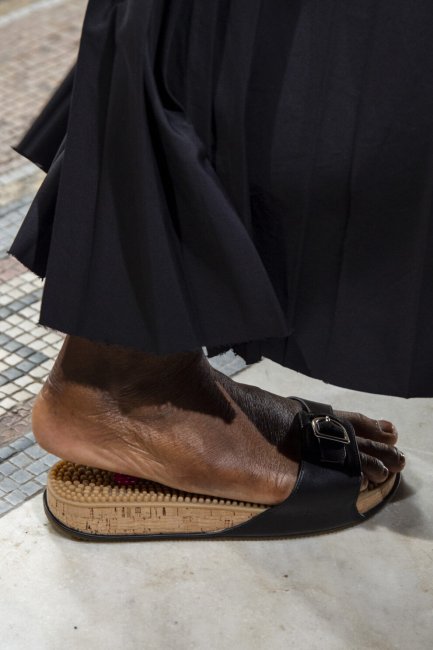 ValentinoВ коллекциях брендов весна-лето 2021 слайдеры занимают главенствующую позицию. Дизайнеры принялись воспевать любимую домашнюю обувь, даря ей новую жизнь. Мы уверены, что этим летом вы точно сможете найти вариант себе по вкусу – от сдержанных кожаных моделей, которые станут идеальным дополнением делового гардероба, до плюшевых слайдеров, напоминающих об отдыхе и комфорте. Кожаную модель с фигурной лепкой, отсылающей к лепесткам роз, показали Valentino, тем временем более лаконичную модель можно встретить у Salvatore Ferragamo – бренд украсил карамельные слайдеры небольшим устойчивым каблуком. Кроме того, среди всевозможных слайдеров есть модели на массивной подошве, как у Victoria/Tomas или на пробковой –у Gabriela Hearst.