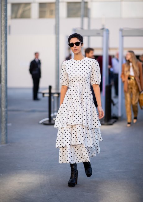 Мини и миди платья, иногда дополненные игривыми узорами и воздушными рукавами, заняли свое место в летнем гардеробе, приукрасив традиционное маленькое белое платье ретро-шармом. В большинстве своем этим летом модницы отказались от сладких конфетных оттенков в пользу других интерпретаций классики: знакомый силуэт теперь сопровождается безупречными деталями, такими как акцентной линией талии, принтованными манжетами и рюшами.