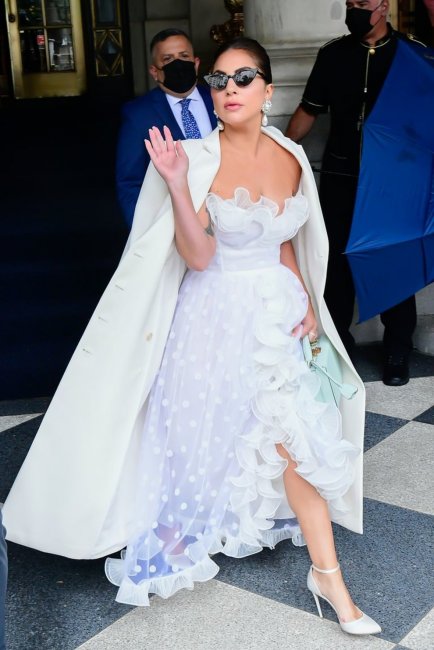 Леди Гага в платье Alessandra RichВо вторник она появилась в городе в розовом миди-платье со сборками Alessandra Rich и миниатюрной белой сумочкой Fendi. Романтичное платье в гороховый принт Гага дополнила белыми лодочками Jimmy Choo и солнцезащитными очками кошачьей формы Gentle Monster, которые придали образу изысканности и лоска. Несколькими часами позже Гага представила еще один запоминающийся образ из коллекции Alexander McQueen весна-лето 2021 авторства Сары Бертон. Полностью черный наряд, с ярусами кружева шантильи и корсетным лифом, еще в декабре 2020 года зарекомендовал себя, как самый звездный наряд в коллекции бренда. Гага решила добавить этому образу ретро-шика, добавив олдскульную сумку YSL Mombasa Horn Bag, созданную еще Томом Фордом.