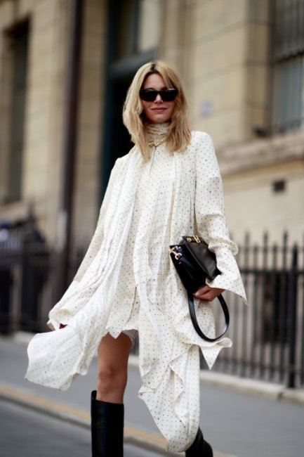 Неделя высокой моды в Париже подошла к концу. За это время мы увидели: первую коллекцию Balenciaga Couture за 53 года, дебютное шоу Питера Мюлье для Alaïa, роскошные показы Chanel, Elie Saab и Christian Dior, коллекцию дизайнера Титосэ Абэ для Jean Paul Gaultier и первую виртуальную презентацию нью-йоркского лейбла Pyer Moss. Тем временем, на улицах Парижа было свое шоу: знаменитости и streetstyle-звезды соревновались в стиле, демонстрируя свои модные образы. Девушки охотно примеряли яркие жакеты с джинсами, сложносочиненные юбки с базовыми футболками и летящие шелковые платья. Многие streetstyle-активистки сделали ставку на классическую черно-белую цветовую гамму, а также оттенки молока и карамели. Vogue.ua собрал лучшие образы гостей на Неделе высокой моды в Париже.