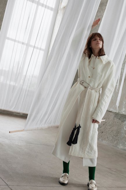 Украинский бренд Przhonskaya представил новую коллекцию, в которую вошли светлые платья, легкие пальто, брюки и другие универсальные вещи из натуральных тканей.