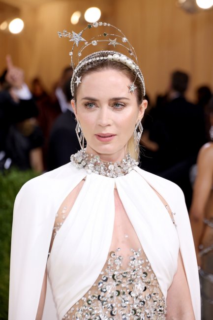 Хейли БиберЗнатоки золотой эры Голливуда моментально узнали в образе актрисы Эмили Блант отсылки к мюзиклу "Девушки Зигфилда" 1941 года. Знаменитый головной убор актрисы Хеди Ламарр в виде звездочек стал украшением и для Блант. Платье для британки создал бренд Miu Miu.