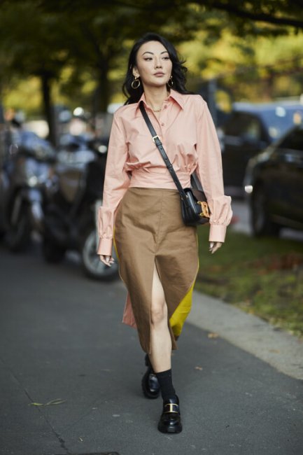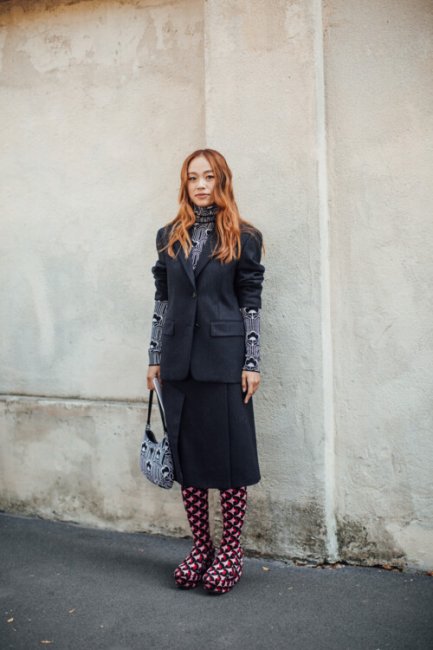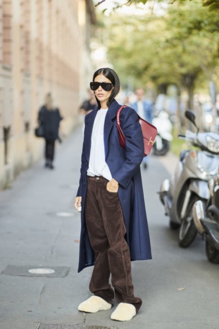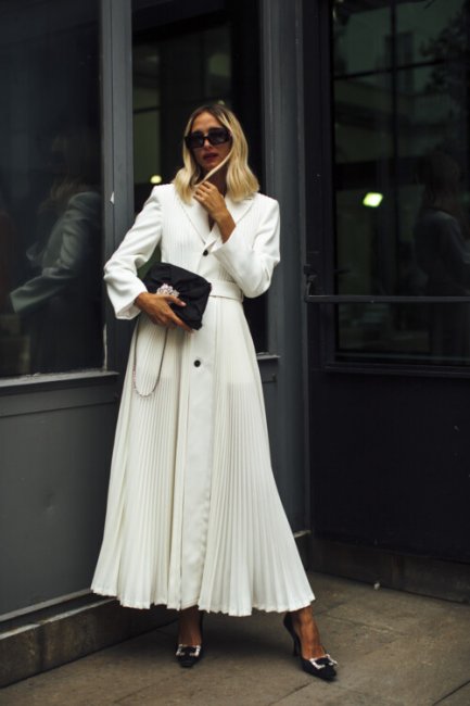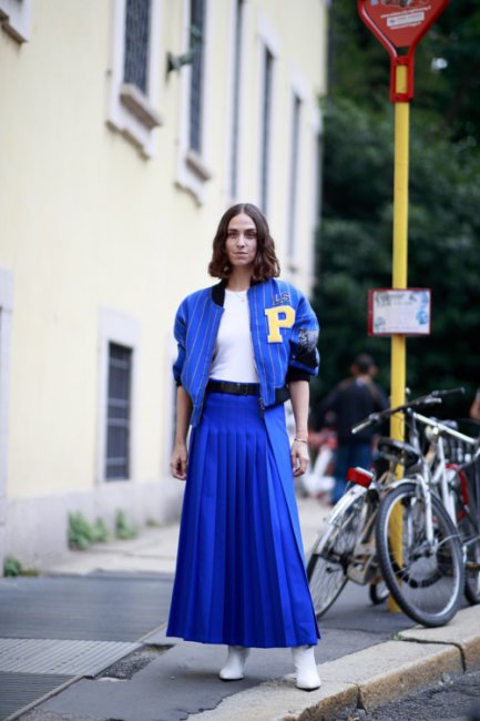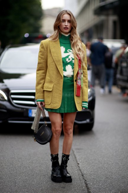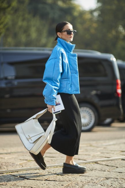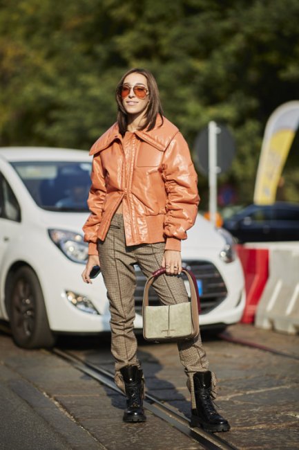 Модницы надевали украшенные узорами ботильоны-чулки на платформе, куртки-бомберы в паре с юбками в складку, уютные трикотажные платья с маскулинными жакетами, шерстяные брючные костюмы с лоферами на массивной подошве, а также всевозможные тренчи и пальто – от кожаных вариантов до ярких объемных моделей. Vogue.ua собрал самые актуальные образы гостей на Неделе моды в Милане.