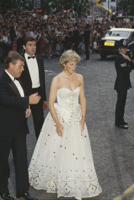 Принцесса Диана, 1981Следующее появление принцессы Дианы было еще более ярким. В 1983-м году, уже в статусе принцессы Уэльской, она посетила премьеру ленты "Осьминожка", в котором агент 007 расследует убийство агента 009 в Восточном Берлине. В этот раз ее выбор пал на белое узкое платье с открытым плечом, подчеркивающим ее хрупкую фигуру. Этот образ неизменно входит в списки лучших выходов Дианы.