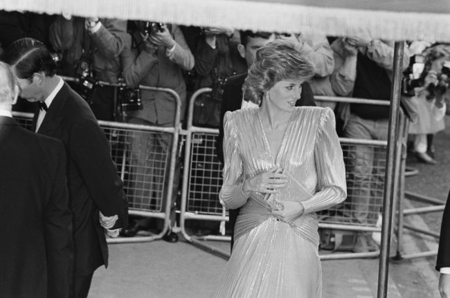 Принцесса Диана, 1983Еще спустя два года принцесса Диана сделала ставку на серебро и плиссировку. При ходьбе это платье напоминало расплавленный металл, а создал его ее друг-дизайнер Брюс Олдфилд. Кстати, недавний выход герцогини Кэтрин на премьере "Не время умирать" в золотом платье Jenny Packham стал оммажем именно этому образу.