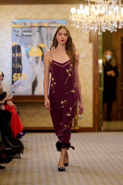 ARTEMKLIMCHUK весна-лето 2022Эти ощущения размеренности и спокойствия в коллекции Артем Климчук передал с помощью использования большого количества ручной работы – вязки, вышивки, декора, а также противопоставлению вещей подчеркнуто уютных и драматических. Благодаря этому чувственные наряды на тонких бретелях встретились с пушистыми кардиганами, белые сорочки стали отличной парой к полупрозрачным юбкам, а на безразмерных худи расцвели крупные бутоны, вышитые вручную.