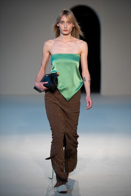 Неделя моды в Будапеште с каждым сезоном набирает все больше оборотов – здесь можно увидеть как коллекции уже известных в мире венгерских брендов, так и только начинающих, познакомиться с артизанальными мастерами и стать свидетелем появления мощного регионального fashion-хаба. Рассказываем о самых интересных коллекциях Budapest Central Europe Fashion Week сезона весна-лето 2022. NANUSHKA весна-лето 2022NanushkaNanushka – самый известный модный бренд из Венгрии в мире. Сандре Сандор и ее команде удалось не просто сделать узнаваемым собственное имя, но и поставить Венгрию на модную карту мира. Одежда Nanushka продается повсюду, причем не только через крупных байеров, но и в собственных бутиках, что может себе позволить далеко не каждый молодой бренд. Одним из залогов своего успеха основательница марки называет связь с родной страной. Так, новая весенне-летняя коллекция марки посвящена Будапешту – Сандра Сандор сейчас находится в положении и в этот период много вспоминала о своем детстве. Дизайнер продолжила работать с уже любимым тончайшим трикотажем и веганской кожей, соединила светлую цветовую гамму с яркими вспышками зеленого, а также не забыла о народных промыслах. В этом сезоне Сандор переосмыслила традиционные венгерские скатерти Kalotaszegi, превратив их плетение в ненавязчивый и воздушный декор на тренчах, сорочках и топах. NANUSHKA весна-лето 2022 NANUSHKA весна-лето 2022 NANUSHKA весна-лето 2022 NANUSHKA весна-лето 2022 NUBUNUBU - один из самых старых венгерских брендов, который хорошо известен на локальным рынке. Только в Будапеште у них три бутика, один из которых расположен на главной fashion-улице города рядом с бутиками Louis Vuitton и Max Mara, что привлекает к нему немалое внимание туристов. В NUBU также активно популяризируют венгерское наследие. Например, коллекция сезона весна-лето 2022 вдохновлена творчеством современного керамиста Йожефа Симона Жолта, который воспевает красоту растительного мира. В его работах доминируют черный и белый цвета, которые характерны и для эстетики NUBU. Разбавляют это контрастное и сильное сочетание вкрапления терракота, хаки и зеленого. Продолжает связь моды и искусства в этой коллекции разнообразие асимметрических форм, необработанные края и воздушный силуэт. NUBU весна-лето 2022 NUBU весна-лето 2022 NUBU весна-лето 2022 NUBU весна-лето 2022 AERONAERON – идеальное воплощение современной женственности, наполненной расслабленностью и изяществом. Главным материалом коллекции стал тончайший трикотаж. Из него основательница марки Эстер Эрон сшила обтягивающие платья в пол, которые подчеркивают фигуру, но не стесняют движений, удлиненные джемперы, которые эффектно смотрятся с узкими брюками, а также спортивные бра и велосипедки. Последние дизайнер предлагает носить с классической верхней одеждой. Свою фирменную расслабленность в AERON добавили и в брючные двойки – более свободный крой жакетов, кюлоты вместо стандартных брюк, чувственные бра под широкоплечими жакетами. AERON весна-лето 2022 AERON весна-лето 2022 AERON весна-лето 2022 AERON весна-лето 2022