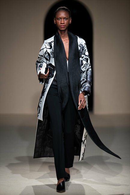 AERON – идеальное воплощение современной женственности, наполненной расслабленностью и изяществом. Главным материалом коллекции стал тончайший трикотаж. Из него основательница марки Эстер Эрон сшила обтягивающие платья в пол, которые подчеркивают фигуру, но не стесняют движений, удлиненные джемперы, которые эффектно смотрятся с узкими брюками, а также спортивные бра и велосипедки. Последние дизайнер предлагает носить с классической верхней одеждой. Свою фирменную расслабленность в AERON добавили и в брючные двойки – более свободный крой жакетов, кюлоты вместо стандартных брюк, чувственные бра под широкоплечими жакетами.