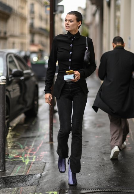 Предпочтение в сезоне осень-зима 2021/2022 стоит отдать черным прямым джинсам в винтажной расцветке. Подумайте об оттенках, которые приобретает ваша любимая пара после слишком частой стирки. С соответствующим силуэтом деним такого цвета будет выглядеть стильно и даже элегантно, и подойдет для путешествий или выходных с друзьями.