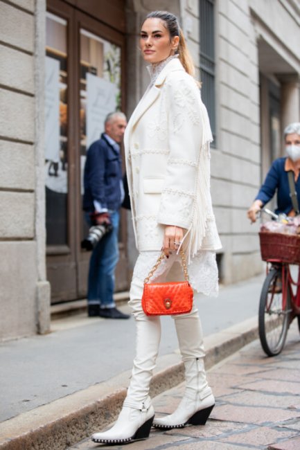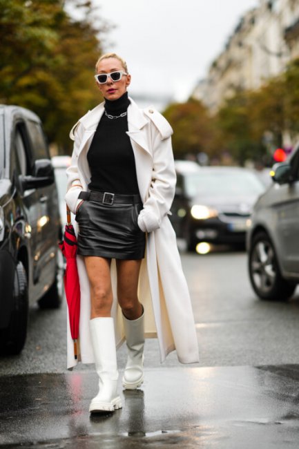 Принято считать, что черная обувь - самая практичная и универсальная пара на осенне-зимний период, однако в этом году у нее появился серьезный конкурент в виде белых пар. Так, ботинки на грубой подошве в цвете белых лилий, казаки с сероватым подтоном, ботфорты-чулки в леденящем белом цвете, сапоги-трубы в оттенке топленого молока или элегантные ботильоны с бриллиантовым блеском стали одним из главных трендов сезона осень-зима 2021/2022. Белая обувь имеет сразу несколько преимуществ. Во-первых, она освежает образ и смотрится более выигрышно на фоне темных пар обуви. Во-вторых, на ней видно разводов соли, а значит она не менее практичная. Ну и наконец, она легко сочетается со всеми оттенками и выглядит минималистично, благородно и дорого. Еще сомневаетесь, тогда читайте дальше.
