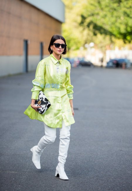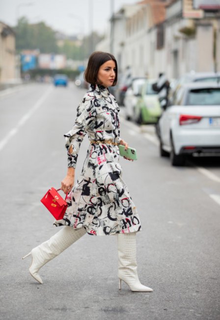 В этом сезоне каждая модница сможет выбрать себе пару белой обуви, ведь в коллекциях дизайнеров представлены различные варианты - от ботинок на каждый день до вечерних сапог на высоком каблуке. Streetstyle-звезды давно обзавелись актуальной белой обувью и вовсю демонстрировали ее на прошедших Неделях моды - от Парижа до Нью-Йорка. Модницы выбирали массивные сапоги с фактурной лепкой Valentino, ботфорты-чулки на платформе Prada, грубые модели на трактрной подошве Gia Couture, казаки Haider Ackermann и элегантные модели с тиснением Jimmy Choo. Девушки носили их с объемными пальто, дерзкими мини-юбками и дутыми куртками, с цветочными платьями и кардиганами, а также с кожаными брюками и мужскими блейзерами. Предлагаем посмотреть с чем носят белую обувь streetstyle-активистки в модных столицах.