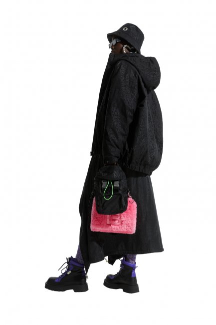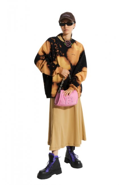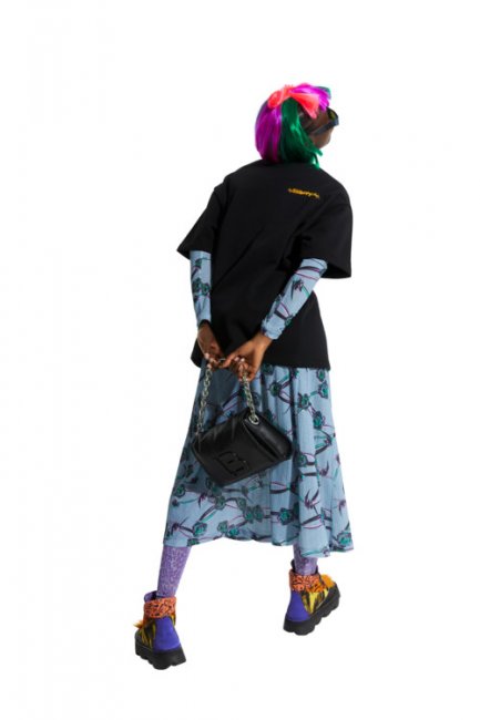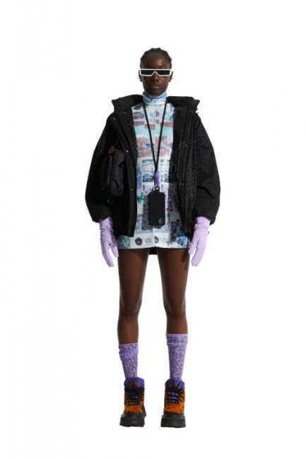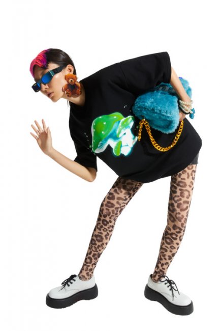 Рейв1 / 3BIMBA Y LOLA предлагает особый вид рейва: без баров, клубов и развлекательных заведений, но с желанием насладиться свободой и отпустить себя. Яркие цвета, деним, неожиданные сочетания и нестандартная одежда — испанский лейбл считает, что это и есть высшее выражение собственного «я». Эта коллекция состоит из броских принтов, облегающих сетчатых топов, обуви на платформе, чокеров и аксессуаров с шипами, а также других макси-аксессуаров, которые украшают фигурки в виде медведей, цветов и грибов — еще одна отсылка к природе.
