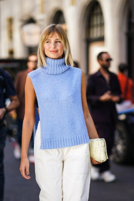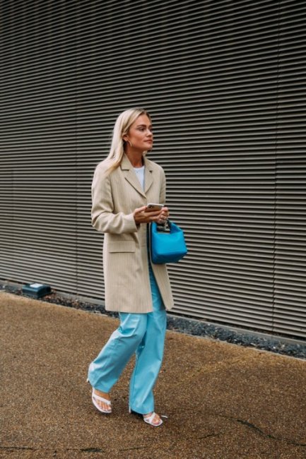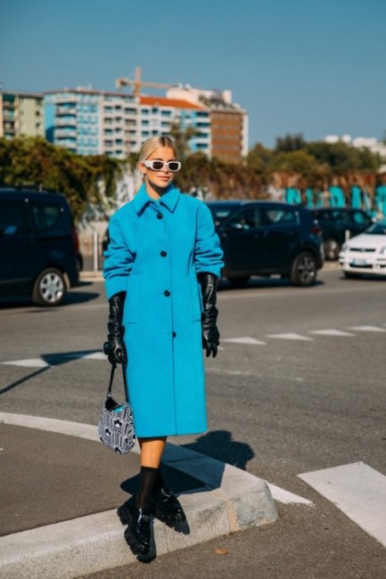 Ярко-голубой оттенокЗавершающим в списке главных streetstyle-трендов уходящего года станет яркий голубой – главный собрат и в то же время конкурент зеленого цвета. Этой зимой у него есть все шансы продолжить свое победоносное шествие по улицам модных столиц. Советуем вдохновиться образами звезд стритстайла и добавить в свой гардероб пальто, брючный костюм и аксессуары в этом свежем оттенке.