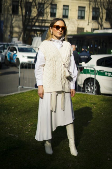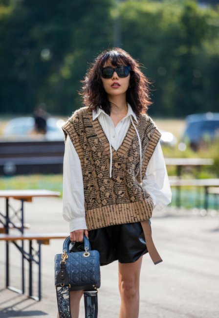 Вязаные жилетыОбразы в стиле преппи замечены практически во всех коллекциях модных брендов в этом году. Именно эта заметная тенденция дала вязаным жилетам новую волну популярности. В 2021-м модницы активно выбирали объемные модели со спущенной линией плеч, варианты, украшенные принтами в ромбы или "шахматная доска", с высоким воротом или V-образным вырезом.
