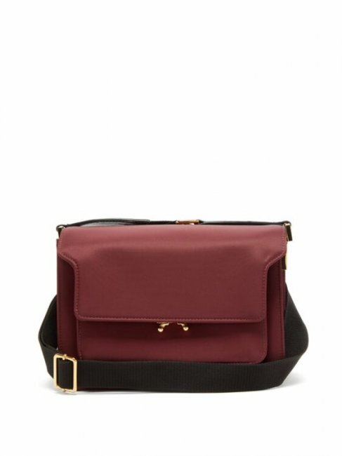 BurberryВ осенне-зимнем сезоне 2021/2022 многие бренды представили нейлоновые сумки. Среди них был утилитарный нейлоновый рюкзак Sacai, сумки на ремне с логотипом Alexander McQueen, стеганые мини-сумки Marni и украшенные звездами объемные аксессуары от Miu Miu сиреневого и ярко-розового цветов.