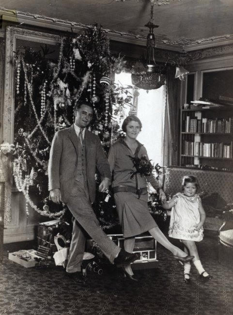 12 / 24Фрэнсис Скотт Фицджеральд и Зельда Фицджеральд с их дочерью перед рождественской елкой, середина 1920-х годов