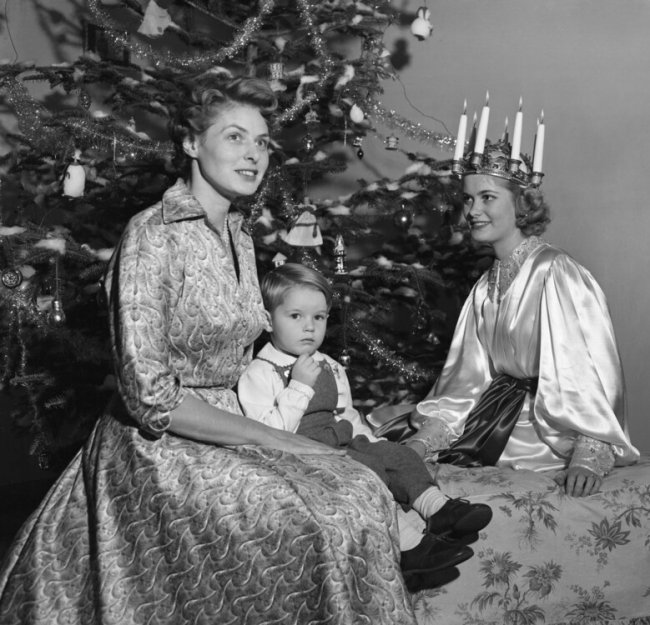 16 / 24Ингрид Бергман с сыном позируют с королевой света, 1952 год