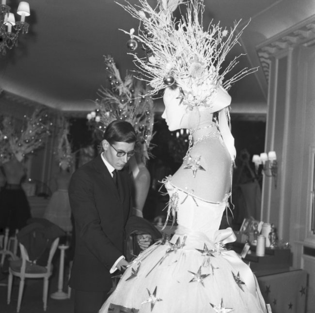 24 / 24Ив Сен-Лоран украшает манекены в Доме Christian Dior, 1957 год