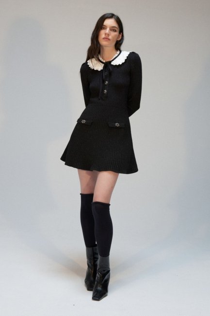 Стиль преппи продолжает занимать список актуальных трендов и в 2022 году. Дизайнер внедряют школьную эстетику в гардеробы модниц с помощью черно-белых платьев с накрахмаленными воротниками. Так, Alessandra Rich сделали ставку на короткое цветочное платье с белым ажурным воротником, а Self-Portrait показали трикотажный наряд А-силуэта. Поклонницы необычных решений смогут найти отдушину в черно-белом платье Tory Burch с перфорацией или эффектных мини Christian Dior с абстрактными принтами.