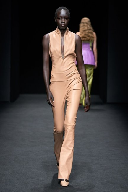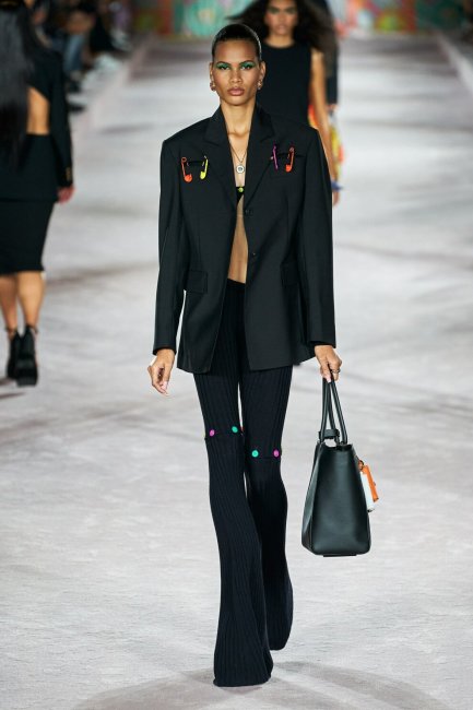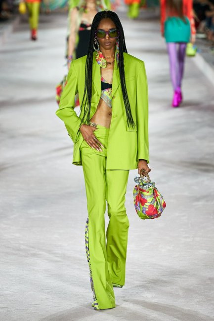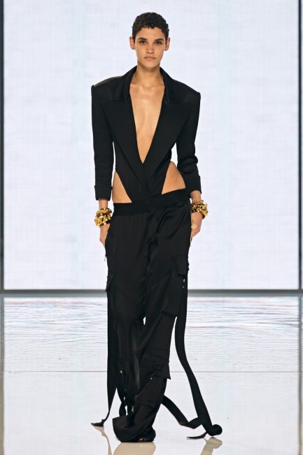 Если в прошлом сезоне бренды охотно декорировали брюки эффектными разрезами внизу изделия, то теперь на повестке дня брюки с соблазнительными вырезами на бедрах, в которые просто невозможно не влюбиться. Balmain показали трикотажные белые и черные пары с низкой посадкой, оголяющие одну часть бедра, Couregges представили брюки-карго с двумя симметричными вырезами, Versace украсили эффектные салатовые брюки bootcut небольшим вырезом и пряжкой с фирменной монограммой, а Drome сделали выбор в пользу минималистичных приталенных брюк.