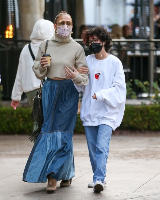 Образы в стиле бохо хороши не только летом, но и зимой. Об этом свидетельствует последний выход Дженнифер Лопес в Лос-Анджелесе. Певица и актриса на днях появилась в одной из ключевых вещей богемного стиля — джинсовой макси-юбке Christian Dior, выполненной по принципе пэчворк. Свой образ Джей Ло дополнила укороченным кремовым джемпером с высоким воротом и коричневыми ковбойскими сапогами Ralph Lauren с потертостями. В качестве аксессуаров Дженнифер добавила золотые серьги-кольца Jennifer Fisher и солнцезащитные очки Max Mara Geometric. Завершающим штрихом стала кожаная сумка-хобо с длинной бахромой из коллекции Chanel Métiers d'Art. Chanel Pre-Fall 2014.