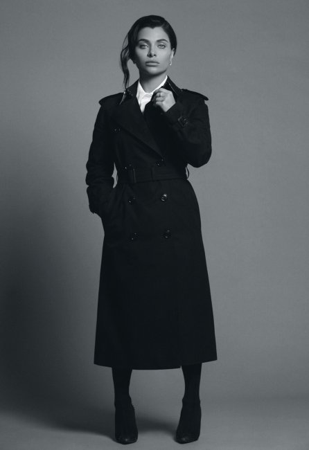 Бавовняний тренч, Alexander McQueen; сорочка з попліну, Maison Margiela; шкіряні ботфорти, Christian Louboutin; сережки, жовте золото, діаманти, Kirsten Drew