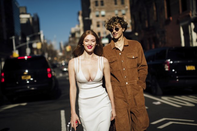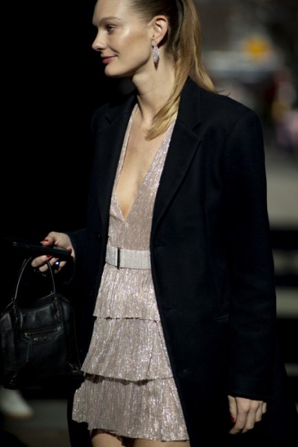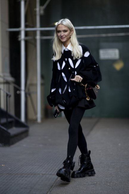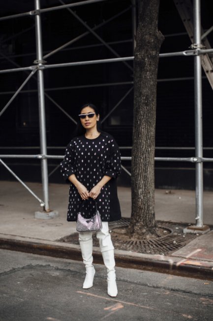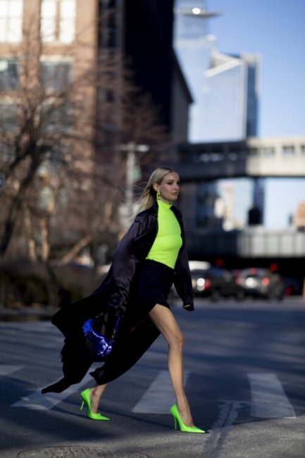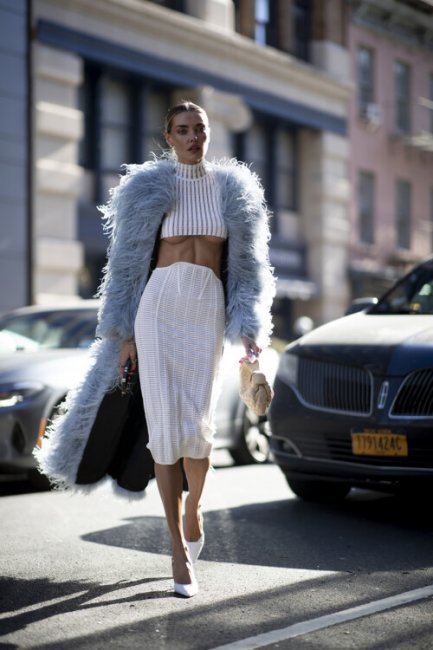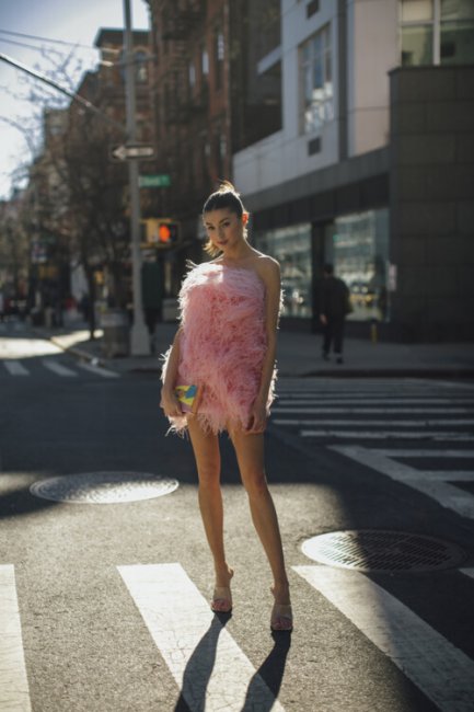 Несмотря на минусовую температуру streetstyle-активистки демонстрировали эффектные образы для вечерних выходов. Бросая вызов холоду на улицах Нью-Йорка можно было заметить модниц в коротких пернатых платьях, мини-юбках и жакетах, усыпанных пайетками, коротких нарядах с бантами на спине и трикотажных образах с вырезами, повторяющими контур тела. Инфлюенсеры не побоялись открывать ноги и носить одежду с глубоким декольте. Так, streetstyle-звезда Леони Ханне, за которой в Instagram следит более четырех миллионов подписчиков, неоднократно появлялась в летних босоножках, комбинируя их с платьями с бахромой, мини-юбками и тонким трикотажем, оголяющем участки тела. Vogue.ua собрал лучшие образы гостей на Неделе моды в Нью-Йорке.