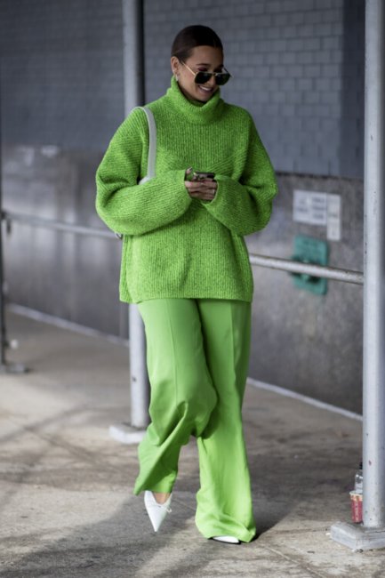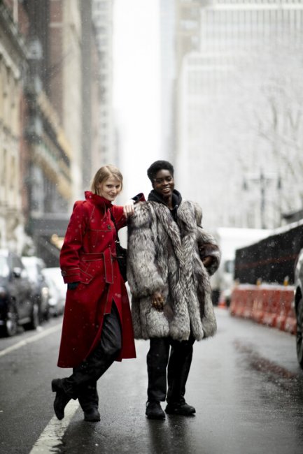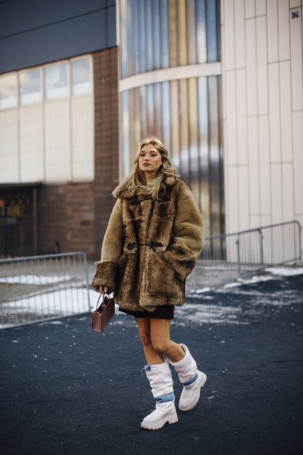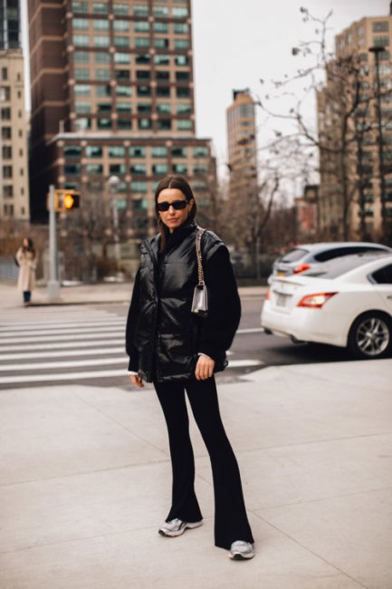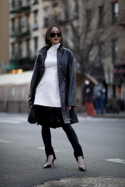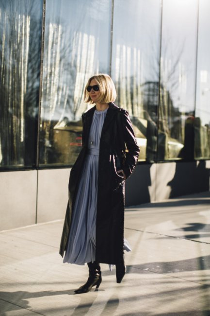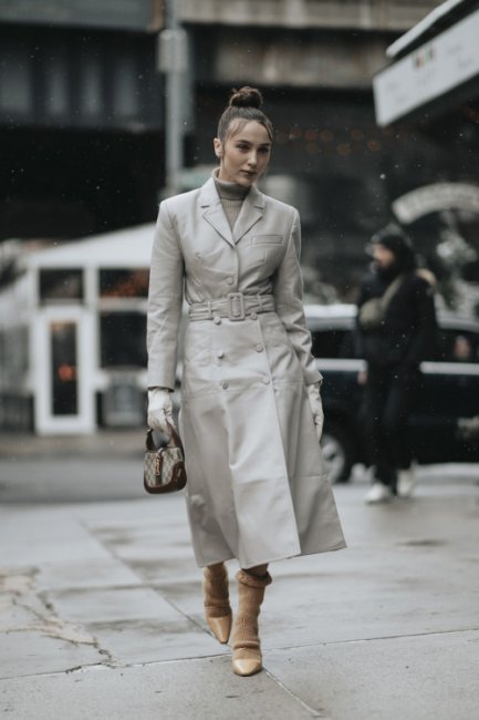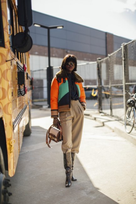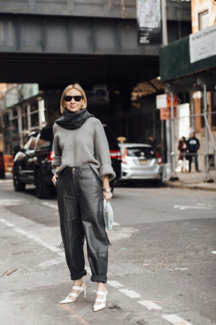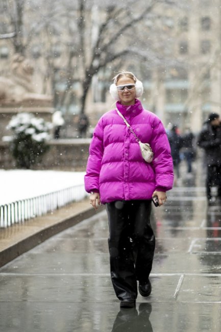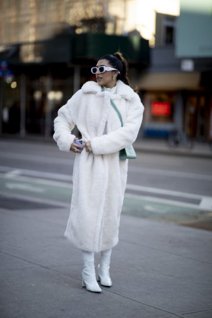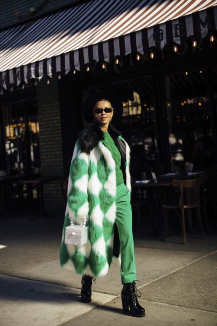 Завершилась Неделя моды в Нью-Йорке и пора рассмотреть модные образы гостей, которые можно носить уже сейчас. Учитывая холодную погоду многие streetstyle-звезды в этот раз выбирали теплую верхнюю одежду: длинные кожаные тренчи, меховые шубы в пастельных оттенках, яркие плащи, двубортные пальто и маскулинные бомберы. Девушки сочетали верхнюю одежду с объемными шарфами, пушистыми наушниками, меховыми панамами, элегантными беретами и широкополыми шляпами. Многие модницы отдавали предпочтение шерстяным брючным костюмам, объемным свитерам в жизнерадостных оттенках, кожаным ансамблям и силуэтным трикотажным платьям.
