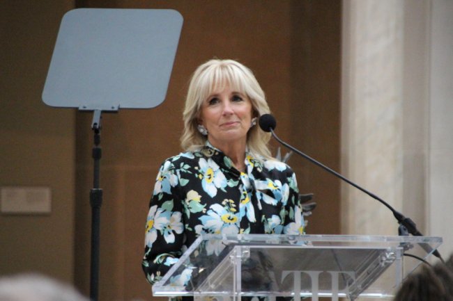 «Наш стиль допомагає нам висловити те, що неможливо передати словами. Ми розкриваємо і приховуємо, хто ми є, за допомогою символів і форм, кольорів і крою — і завдяки тим, хто їх створює, — сказала пані Байден. — Як викладачка англійської мови, я завжди вірила в силу мови. Але відколи я стала першою леді, мені нагадали, що це лише один зі способів спілкування».