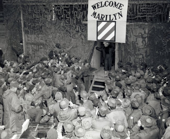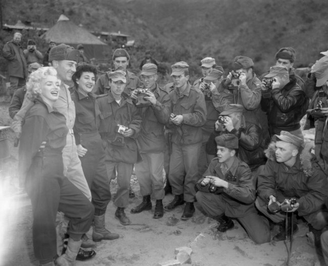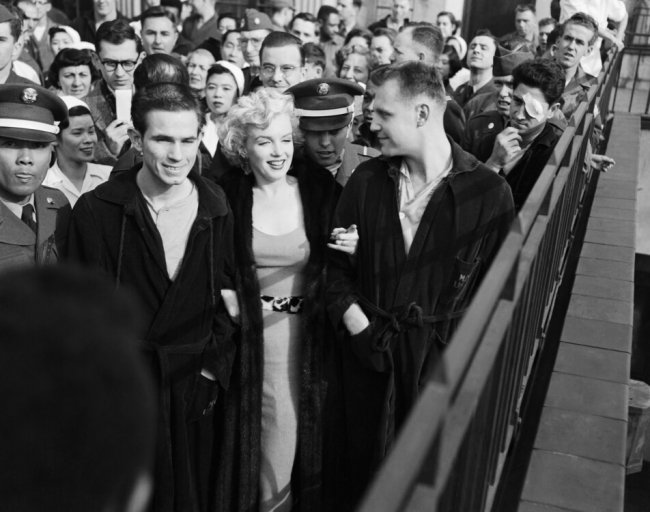 6 / 19Мерилін Монро відвідує американські війська в Кореї, лютий 1954