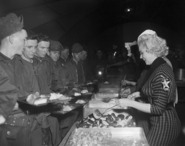 15 / 19Мерилін Монро готує їжу для воєнних, 22 лютого 1954 року