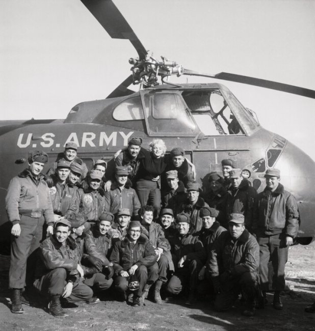 За всю історію існування Голлівуд подарував світу безліч неймовірних акторів та актрис. Деякі з них стали справжніми іконами й назавжди запам’яталися своєю вродою, витонченістю, талантом. Мерилін Монро була однією з таких виняткових зірок. 26.02.1954 — Південна Корея: Мерилін Монро під час прогулянки на одному з американських танків До того, як стати голлівудською зіркою, Мерилін Монро, справжнє ім’я якої Норма Джин, працювала на фабриці під час Другої світової війни. Її робота полягала в обприскуванні літаків антипіреном, а також у складанні радіолітака OQ-2 — іншими словами, безпілотника. Це був перший у світі безпілотний літальний апарат масового виробництва. Мерилін Монро та 2-й лейтенант Гарднер Х. Сноу на крилі F-84 Thunderjet BBC США обговорюють бойові дії в Кореї, 27 лютого 1954 року Знову до військових справ Мерилін Монро повернулася вже відомою акторкою. У січні 1954 року Мерилін Монро й Джо Ді Маджо одружилися в Сан-Франциско й вилетіли до Японії на медовий місяць. Коли їхній літак почав приземлятися в аеропорту Токіо 1 лютого 1954 року, до Монро звернувся генерал-майор Чарльз В. Крістенберрі, помічник начальника штабу Далекосхідного командування армії США. Він запитав зірку, чи не хотіла б вона відвідати Корею на кілька днів і розважити американські війська, які тоді дислокувалися в Сеулі. Мерилін Монро із сертифікатом почесного члена 25-го дивізіону, 18 лютого 1954 року Монро радо погодилася. Вона хотіла віддячити тим солдатам, які писали листи до Голлівудської студії й вимагали її появи в помітніших ролях. Тож поки її чоловік подорожував, вона завітала на Корейський півострів. Упродовж чотирьох днів Монро відвідувала американські військові бази та влаштувала 10 шоу для приблизно 100 000 військовослужбовців. Творча мандрівка Мерилін Монро мала приголомшливий успіх — вона неабияк піднесла бойовий дух американських солдатів за кордоном та вкотре стала народною улюбленицею. 1 / 19 Мерилін Монро позує солдатам після шоу в штабі 3-ї піхотної дивізії США, 18 лютого 1954 року 2 / 19 Мерилін Монро під час шоу для 25-ї дивізії в Кореї, 22 лютого 1954 року 3 / 19 Мерилін Монро розрізає торт, який їй подарували сержанти 2-го дивізіону, 19 лютого 1954 року 4 / 19 Мерилін Монро під час візиту до сержантів 2-го дивізіону, 19 лютого 1954 року 5 / 19 Мерилін Монро відвідує американські війська в Кореї, лютий 1954 6 / 19 Мерилін Монро відвідує американські війська в Кореї, лютий 1954 7 / 19 Мерилін Монро, одягнена в армійську сорочку і штани, з морськими піхотинцями невдовзі після її прибуття в Сеул, 21 лютого 1954 року 8 / 19 Мерилін Монро махає з гелікоптера першій дивізії морської піхоти, 21 лютого 1954 року 9 / 19 Мерилін Монро після шоу для понад 10 000 морських піхотинців, лютий 1954 10 / 19 Мерилін Монро стоїть із жінками з армії США, ВМС, ВПС та Корпусу морської піхоти 11 / 19 Мерилін Монро під час візиту в Корею 12 / 19 Мерилін Монро прощається з солдатом 13 / 19 Мерилін Монро розважає групу солдатів у Кореї 14 / 19 Мерилін Монро їсть торт у їдальні роти 2-ї піхотної дивізії поблизу Сеула, Південна Корея, 18 лютого 1954 року 15 / 19 Мерилін Монро готує їжу для воєнних, 22 лютого 1954 року 16 / 19 Мерилін Монро їде на джипі з бригадним генералом, 20 лютого 1954 року 17 / 19 Мерилін Монро під час візиту до госпіталю армії США в Токіо, 9 лютого 1954 року 18 / 19 Мерилін Монро з армійськими льотчиками 19 / 19 Мерилін Монро під час шоу для американських воєнни