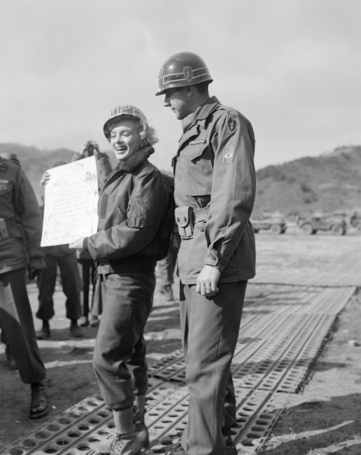 26.02.1954 — Південна Корея: Мерилін Монро під час прогулянки на одному з американських танків