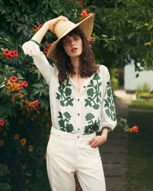 З вишиванкоюПоєднання білого деніму й патріотичної вишиванки – справжній must-have цього літа. Спробуйте носити вишиванку не лише в дні національних українських свят, а й щодня в парі зі світлими джинсами. Модний варіант стилізації ви знайдете в українського бренду ETNODIM – білі джинси прямого крою в дуеті із сорочкою з вишитими візерунками та солом’яним брилем.