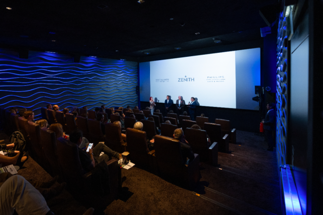 Calibre 135 Observatoire Limited EditionГості презентації ексклюзиву здійснили подорож у 1950-ті в одному з культових женевських кінотеатрів – їм показали короткий фільм, який розповідає про цю співпрацю. Саме в цей період ZENITH зміцнив свою репутацію видатного виробника високоточних хронометрів завдяки механізму Calibre 135-O.