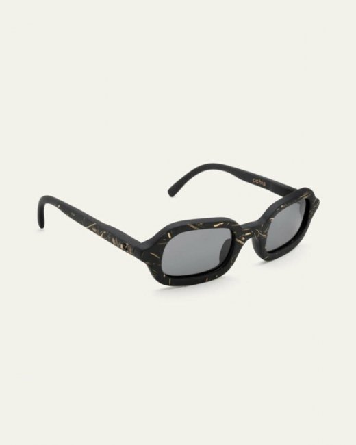 OchisБренд Ochis перший у світі створив окуляри на основі кави. Використану кавову гущу змішують з натуральними оліями та створюють новий рослинний матеріал, що є водонепроникним, має матову текстуру та зберігає запах кави впродовж кількох місяців. Окуляри з кави розкладаються в 100 разів швидше, ніж звичайні пластикові. Кавова оправа розкладається в ґрунті або воді й перетворюється на природне добриво для нових рослин.