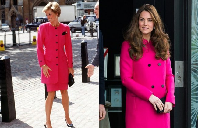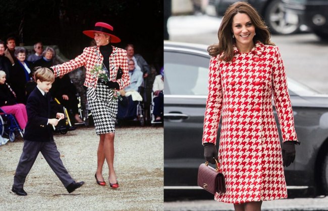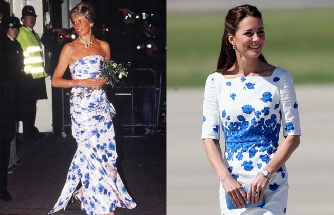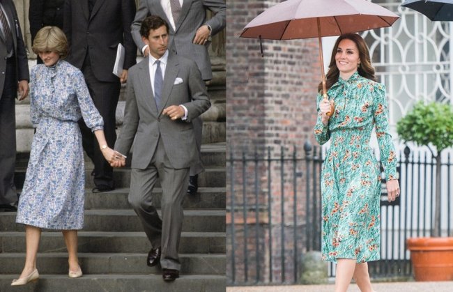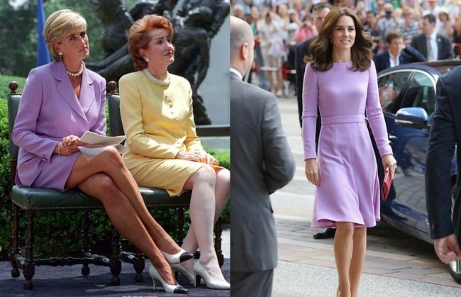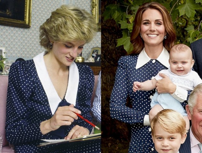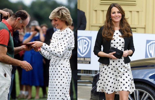 Кейт Міддлтон нерідко черпає натхнення в образах своєї свекрухи принцеси Діани, з якою їй так і не судилося познайомитись особисто. Іноді вона використовує якісь аксесуари, що нагадують про стиль Леді Ді, а іноді попадання виходить майже 100%. Саме так сталося на кінних перегонах Royal Ascot, на яких герцогиня Кембриджська з'явилася у білій сукні у чорний горох Alessandra Rich.