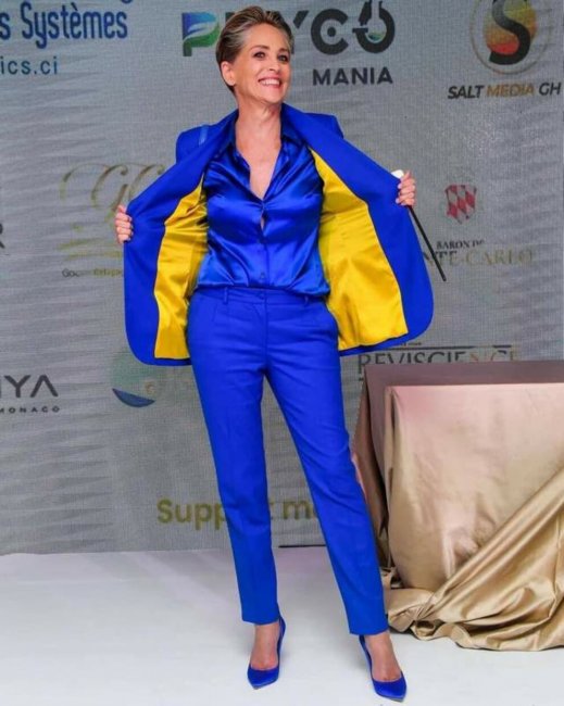 Блогерка Саша Рей у Milla Nova21 травня Тільда Свінтон на пресконференції стрічки "Три тисячі років туги", де вона виконала головну роль, з’явилася у вбранні із символічними для України кольорами. Тільда вибрала блакитну сукню-сорочку вільного крою Alaïa та жовтий клатч Loewe. Тим часом американська актриса Шерон Стоун прийшла отримати гуманітарну нагороду Better World Fund 2022 в шовковій синій блузі, лаконічному синьому костюмі й атласних туфлях такого ж кольору, а потім під час позування розкрила піджак, де було видно яскраву жовту підкладку. Також привернула увагу до України й висловила свою підтримку співачка з Литви Гінта Кубіліуте, вибравши для червоної доріжки пастельно жовту сукню з тюлю з багатошаровими воланами, яку вона доповнила блакитним клатчем зі стразами. Варто зазначити, що Литва дуже дружньо ставиться до України.