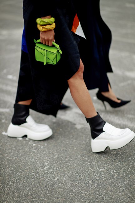 Класичними, та не менш актуальними залишаються моделі чорного та білого кольорів. Такі аксесуари максимально функціональні, адже носити їх можна як у однотонному total look, так і, наприклад, з яскравими сукнями. Робіть ставку на небанальні геометричні форми та декорування, а віднайти натхнення на нову стилізацію допоможуть модні виходи streetstyle-героїнь.