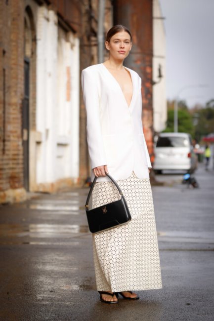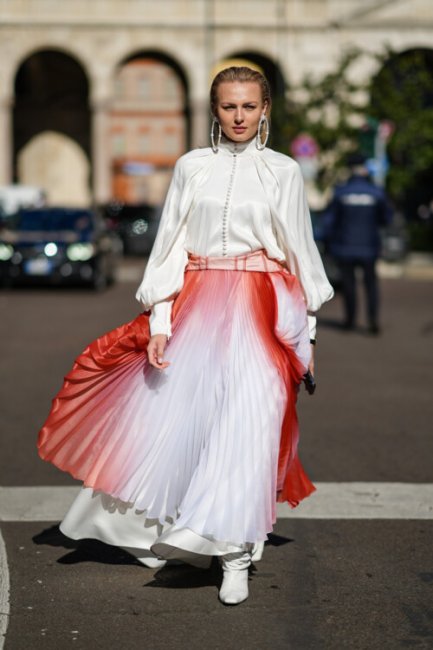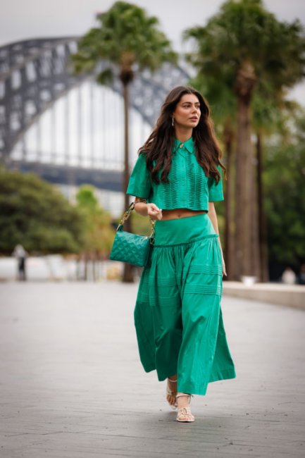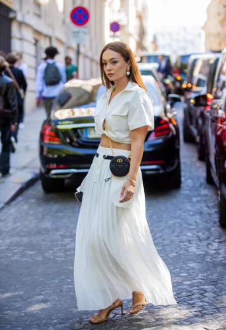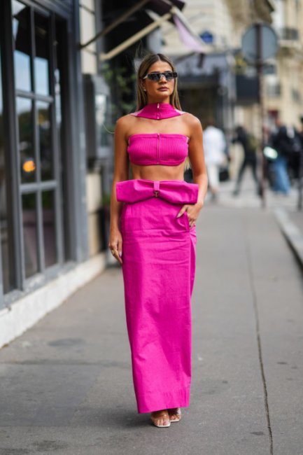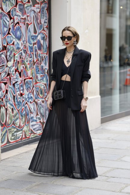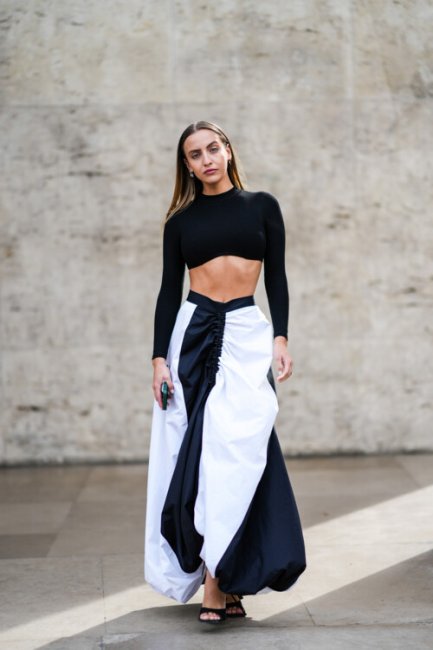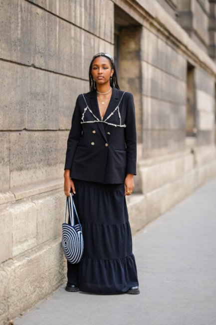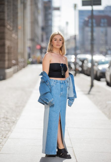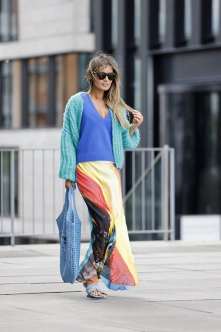 Цього літа streetstyle-інфлюенсери вибирають довжину максі, що відсилає до естетики 1990-х. Модниці комбінують довгі спідниці з укороченими топами й сорочками та накидають на плечі маскулінні жакети, коли температура знижується ближче до 22 °C. Дівчата заправляють у спідниці базові футболки, носять романтичні максі зі спортивними світшотами в стилі athleisure, а також поєднують в’язані топи, трикотажні боді та топи-галетри зі спідницями до підлоги. Серед актуальних максіспідниць можна помітити напівпрозорі моделі, варіанти зі складками – від елегантного плісування до запрасованих шкільних складок, спідниці з розрізом біля стегна, моделі з деніму, літнього в’язання та невагомого шовку. До того ж довгі спідниці мають велику перевагу перед довжиною міні – ви легко можете забрати їх в осінній сезон і носити в парі з теплими речами.