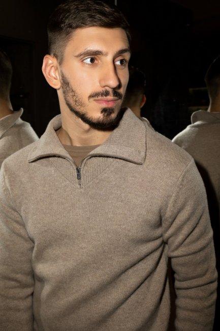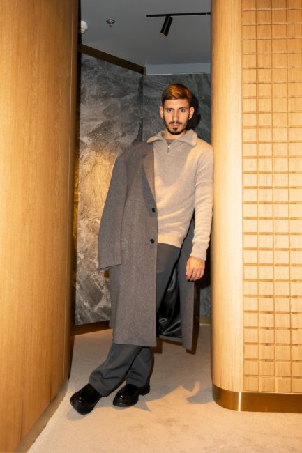 Для Петра стилист подобрал актуальный в этом сезоне свитер на полумолнии Iro, брюки с защипами Lemair, высокие челси бренда 424 и шерстяное классическое пальто Lemair. Стоит обратить внимание и на цветовую гамму: вещи таких оттенков станут универсальными солдатами в любом мужском гардеробе и будут легко сочетать с разнообразной одеждой.