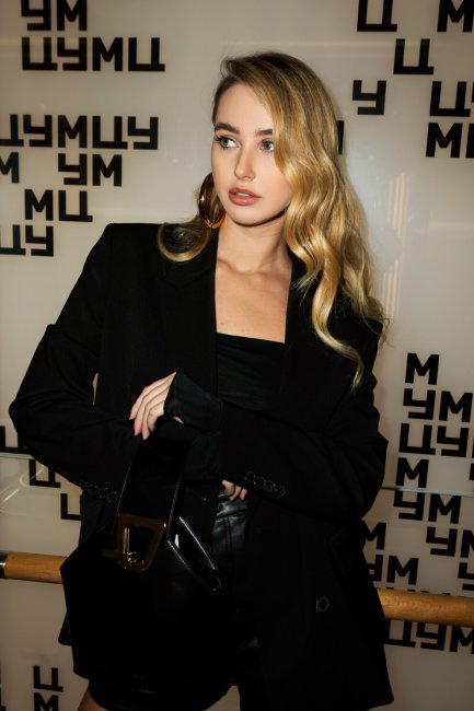Алла БарановскаяОсновательница сети салонов Clipse Алла Барановская примерила в ЦУМ go to вечерний образ: шорты из эко-кожи Free People и топ с квадратным вырезом Free People, поверх которых надела объемный двубортный пиджак Ba&Sh. Алла дополнила наряд сумкой актуальной формы бочонка Danse Lente и высокими лаковыми сапогами Miista. Обратите внимание, как серьги Аллы сочетаются с золотой фурнитурой на сумке — это отличный ненавязчивый вариант добавить монохромному образу необходимых акцентов.