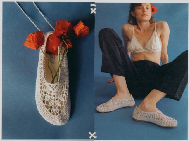 Попри свій потяг до лаконічності та естетики 1990-х, у HVOYA не забувають працювати і з українською спадщиною, демонструючи, як її можна переосмислити в сучасному ключі. Приклад цього – новий літній дроп бренду Vyazani. Povyazani., що продовжує історію використання ручної вишивки на взутті HVOYA. Тільки цього разу майстри не просто використовували окремі декоративні прийоми, а створили повністю в’язане взуття, яке відсилає до українських традицій плетіння. "Створення колекції розпочалося ще до повномасштабного вторгнення, тож вона про мир і мирне життя. Про нас українців, таких працьовитих, талановитих та гарних. Крізь часи — про спадок і ремесло, про талант і дар. Про нас нових, коли тепер є розуміння, що життя, як нитка, — може обірватись у будь-яку мить. Наші ж нитки — міцні".