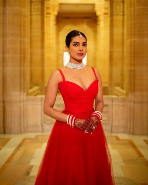 Пріянка Чопра обожнює червоний колір, який, безперечно, дуже личить смаглявій чорнявці. Вона навіть додала дві червоні сукні до своїх весільних убрань, коли виходила заміж за Ніка Джонаса у 2018 році. Для індуїстської церемонії Чопра вибрала червону лехенгу Sabyasachi Mukherji, доповнену діамантовою прикрасою на голову Chopard і складним намистом з етичного білого золота. Однак мало хто знає, що в Пріянки на весіллі була ще яскраво-червона сукня Christian Dior, яка складалася з пишної спідниці й вузького ліфа. Лаконічну сукню наречена обіграла 16-каратною прикрасою Chopard, включно з діамантовою краплею на лобі. Так що пропонуємо поповнити свій гардероб не лише маленькими чорними сукнями в стилі Дженніфер Еністон, а й придивитися до червоних суконь, надихнувшись сміливими образами Пріянки Чопри.