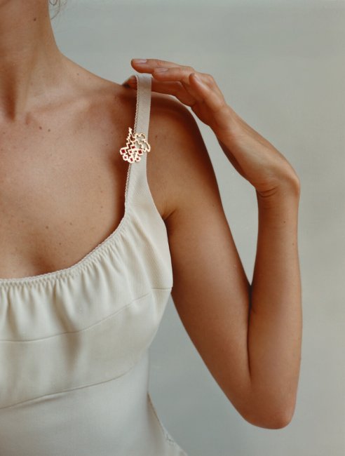 Guzema Fine JewelryДо колекції ввійшли кольє з коралів і бурштину із золотим кулоном у формі кетяга калини, що вишитий хрестиком червоними нитками, а також брошка, моносережка та інші символічні вироби. Без вишивки сьогодні неможливо уявити українську національну спадщину – ця техніка створення одягу та предметів побуту передалася від минулих поколінь і сьогодні саме час продемонструвати її в нових формах та матеріалах. "Я мрію, що так само як вишиванка XIX століття зараз, наші вишиті прикраси будуть цінними й актуальними через віки", – додає дизайнерка.