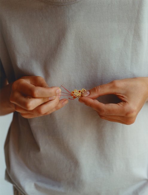 Guzema Fine JewelryКожен виріб у колекціях Guzema Fine Jewelry створюють вручну. Проте тепер над колекцією працюють не лише ювеліри, а й майстриня з вишивання. Прикраси вишивають хрестиком, як колись наші прабабусі власноруч створювали рушники й сорочки. "Найімовірніше, це буде лімітована капсула, адже я прагну, щоб ці прикраси стали для українок справжнім спадком".